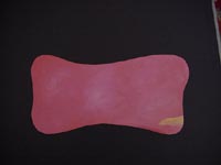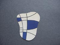 "HOMMAGE TO MONDRIAN" - COMPOSITION IN GRAY AND BLUE. 91x72cm, 1999 | The traditional format of a painting is a flat rectangle. There have been various efforts in modern art to employ non-rectangular shapes. Geometric forms and assembled multipiece units are known, specifically through the works of Stella, Kelly and others. But there is, especially in the wake of contemporary architecture, a cumulative justification to carry the shaped canvas idea to a radical position. That is, to relieve it of all linearity and order and to abandon all geometrically oriented elements. The result is a canvas of free flowing contours, that may be called an organically shaped canvas. This may however be a misleading term, since any reference to nature is non-compulsory and may even be totally indisposed in some cases. Consequently the term Morphism has been introduced. It is free of any organic or biomorph prefixes and as such eligible to be used in context with non-objective paintings. The morphistic canvas is not meant to be a biomorphic form, abstracted from nature. It is rather designed by the requirements and needs the artist sees in the combined work. The shape in its intrinsic quality may or may not suggest some spiritual content, feeling or simply harmony. Morphism is a new approach of combining form and colour. |  "A FLASH OF FIRE" 297x150cm, 2000 |